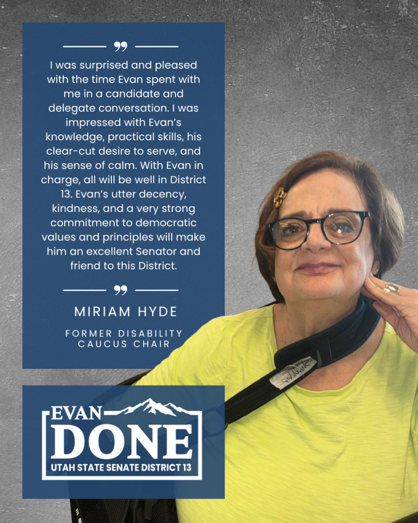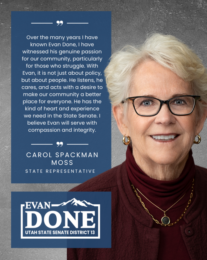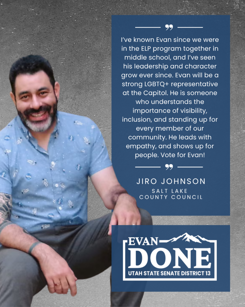 Utah needs leaders who are clear about their values and serious about results. Evan is a progressive who means business and he knows what it takes to implement real, lasting change.